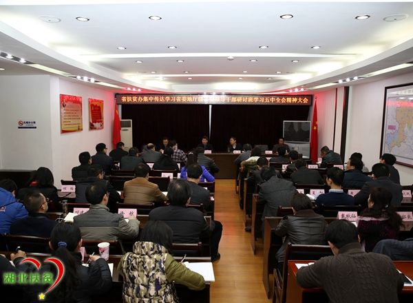 2月19日上午,省扶贫办召开党组中心组(扩大)理论学习会议。党组书记、主任杨朝中主持会议,集中传达了习近平、刘云山同志在省部级主要领导干部学习贯彻党的十八届五中全会精神专题研讨班上的讲话精神和省委书记李鸿忠、省长王国生同志在省委地厅级主要领导干部学习贯彻党的十八届五中全会精神专题研讨班上的讲话精神。