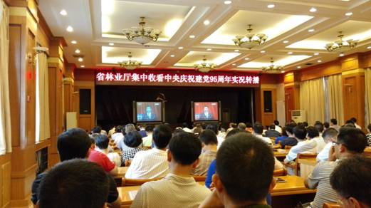 7月1日,省林业厅以开展“支部主题党日”活动的方式庆祝建党95周年。上午,厅机关和厅直单位分别组织所属党员干部集中收看了“中国共产党庆祝建党95周年大会”实况转播,厅党组书记、厅长刘新池和党组其他班子成员与大家一起收看了庆祝大会实况转播;下午,厅机关和厅直单位各党支部组织了形式多样的学习教育活动,厅级党员领导均以普通党员身份参加了所在支部的“主题党日”活动。