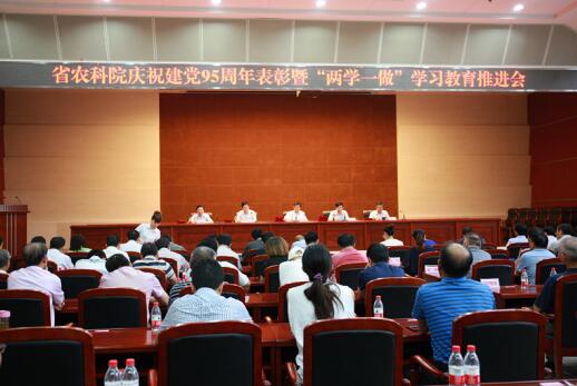 7月1日,省农科院党委在院大楼一楼报告厅召开庆祝建党95周年表彰暨“两学一做”学习教育推进会,庆祝中国共产党成立95周年,表彰我院先进基层党组织、优秀共产党员、优秀党务工作者以及“两学一做”学习教育党的知识竞赛获奖单位,深入推进全院 “两学一做”学习教育和“三抓一促”活动。院党委书记刘晓洪参加会议并讲党课。院党委副书记、院长焦春海主持会议,院党委副书记、纪委书记刘杰,副院长邵华斌,副巡视员夏贤格参加会议。