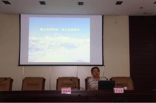 罗永宽教授以《确立党章权威 树立党章意识》为题,为与会党员上了一堂生动的党课。他从习近平关于“认真学习党章 严格遵守党章”论述入手,对党章是最根本的党规党法、党章的修改及其历史经验、十八大党章的新意和亮点、严守党纪与立好党章总规、尊崇和维护党章权威五个部分内容进行了解读。他希望与会党员要以党章为镜,通过知识内化、方法内化、观念内化和践履笃行等四个方面,做合格党员。