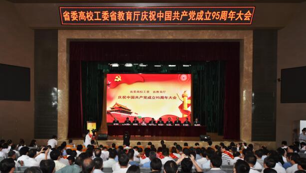 为隆重纪念中国共产党95岁华诞,6月29日下午,省委高校工委、省教育厅举行庆祝中国共产党成立95周年大会,回顾党的光荣历史,缅怀党的丰功伟绩,重温入党誓词,表彰优秀共产党员、优秀党务工作者和红旗党支部。省委高校工委书记、省教育厅厅长、党组书记刘传铁出席会议并讲话,省委省直机关工委副书记于春利到会指导,省委高校工委副书记、省教育厅副厅长严学军宣读《中共湖北省教育厅直属机关委员会关于表彰厅直系统优秀共产党员、优秀党务工作者和“红旗党支部”的决定》,省委高校工委副书记、厅党组成员、机关党委书记余学敏主持会议。