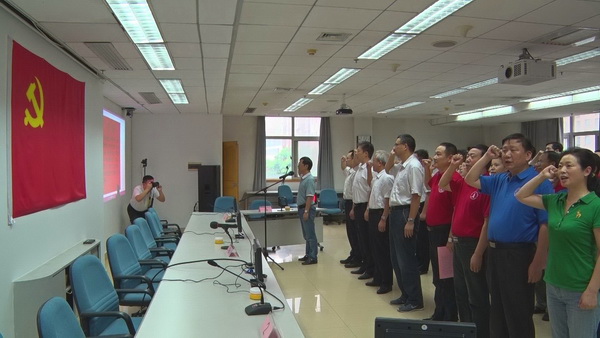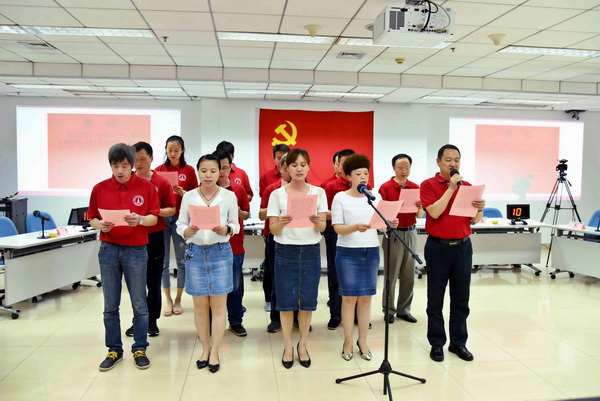 知识竞赛开始前,举行了隆重的重温入党誓词活动。机关全体党员在办党委委员何杰领誓下,面向党旗,庄重宣誓。宣誓后,机关各处、站党支部以支部为单位,在各处、站支部书记的带领下,先后分段集体诵读了《党章》总纲。