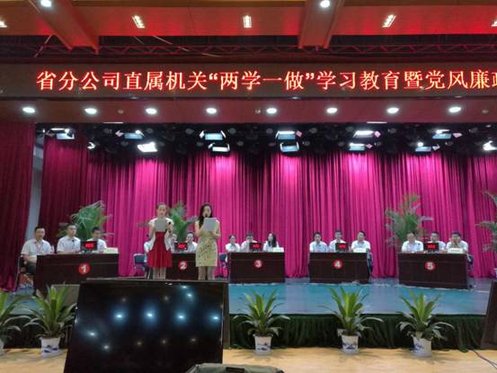 为落实全面从严治党要求,学习宣贯廉政文化知识,提高省邮政公司直属机关党员的党性意识和廉政意识,切实筑牢拒腐防变的思想防线;重温党章党史,牢记党的宗旨,增加党性观念,深入开展“两学一做”学习教育活动,省邮政公司机关党委于7月28日在专业楼19楼多功能厅举办了“‘两学一做’学习教育暨党风廉政知识竞赛”