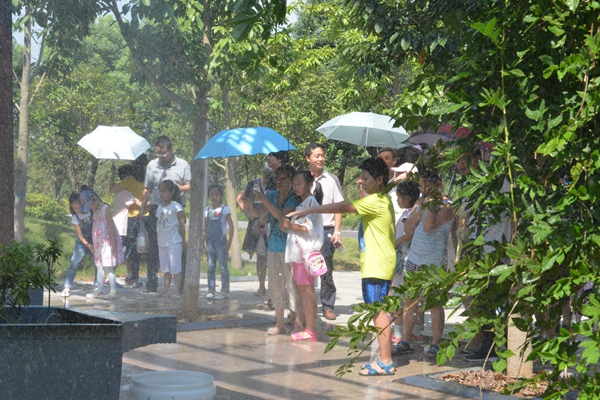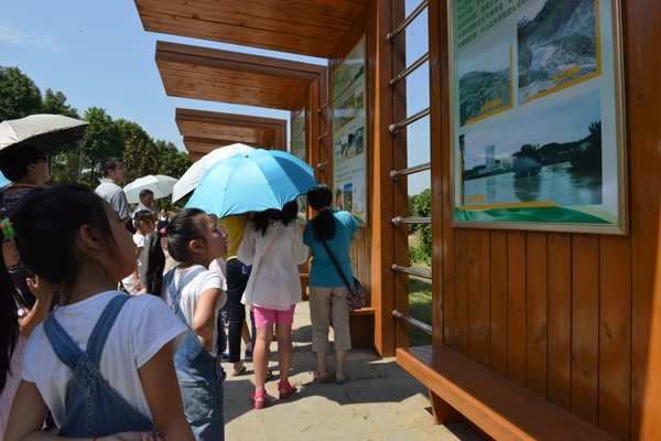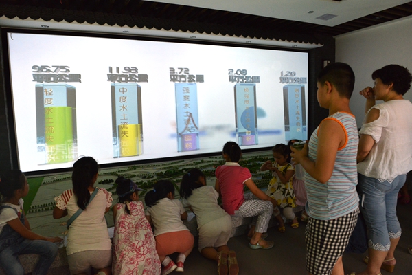 在示范园区的科技实验区内,当模拟仿真降雨系统降下大雨时,小朋友们兴奋地欢呼起来。讲解员介绍,这是目前国内最先进的室内喷射型模拟仿真降雨系统设备,通过人工降雨可分析在相同降雨条件下,不同坡度水土流失的产生过程及强度,直观了解植被对保持水土的巨大作用等。在园区管理人员的带领下,大家观看了水土保持科普宣传画廊和湖北省水土保持沙画公益广告等系列科普、动漫视频。小朋友们在聚精会神的观看中,初步了解水土保持知识,认识保护生态的重要性。