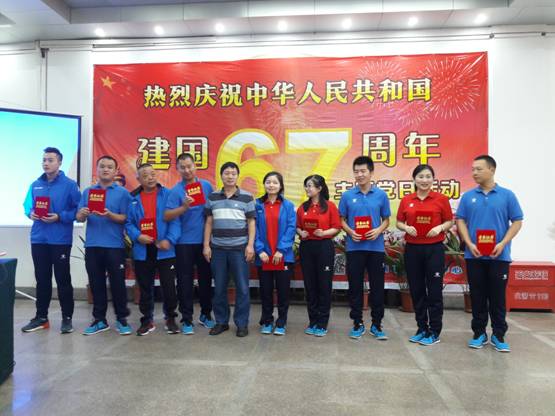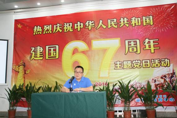 9月29日下午,新华路体育中心举办“伟大的祖国”主题党日活动,全体职工欢聚一堂,用歌曲、诗词、演讲、知识竞猜等形式歌颂党、歌唱祖国,庆祝伟大的祖国成立67周年。