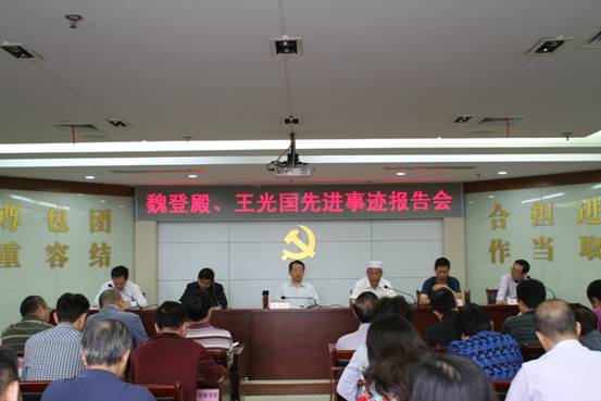 根据“两学一做”学习教育工作安排,2016年10月9日上午,省民宗委举办魏登殿、王光国同志先进事迹报告会。委党组书记、主任柳望春同志做重要讲话,委党组成员、副主任、机关党委书记朱思林主持会议,委党组成员、副主任邓汉光、熊华启及委巡视员蔡德坤、副巡视员段绪光参加报告会。