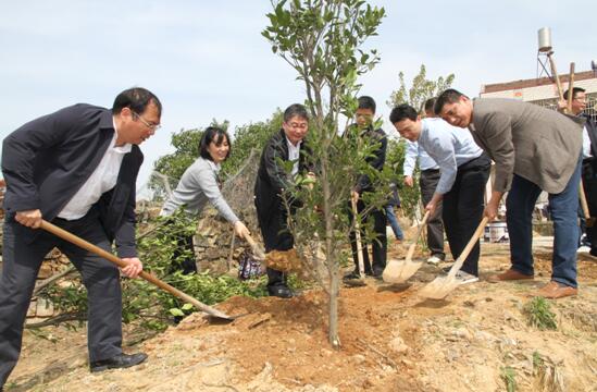 同志们一下车,就平的平土地、挖的挖树窝,陪土、浇水,大家忙个不停,不一会功夫就把柑橘树“安顿”好了。
