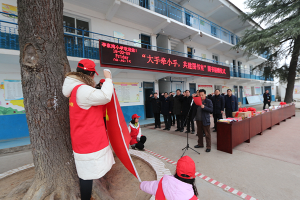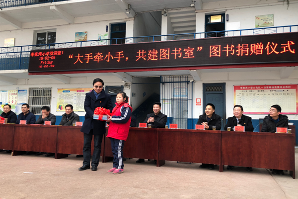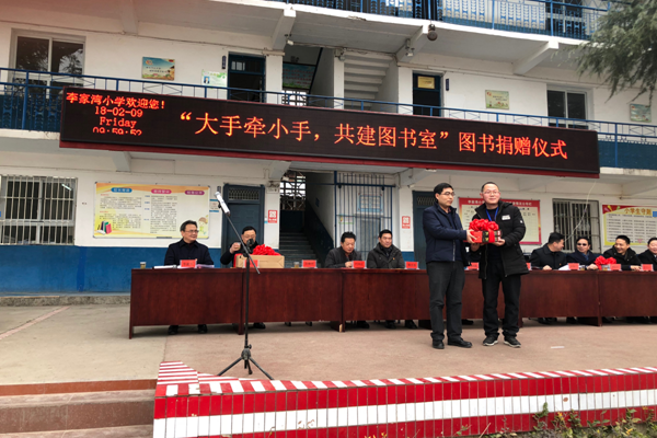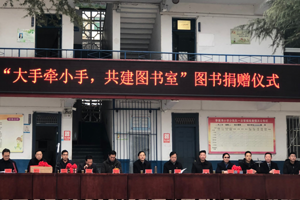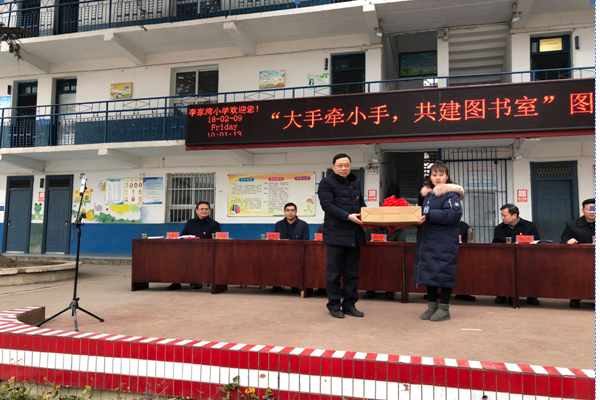"大手牵小手,共建图书室"图书捐赠仪式现场