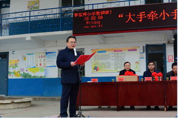 孔祥恩指出,省教育厅认真落实中央和省委省政府决策部署,全面实施"湖北省教育精准扶贫行动计划",努力办好每一所学校,遍及每一名教师,教好每一名学生,温暖每一户家庭。从精准扶贫的角度,要协助区教育局和学校做好整体发展规划,有效地改善学校的校园面积、校园环境和校园硬件设施。从精神文明的角度,要让孩子们受到良好的教育,要培养孩子们热爱祖国、热爱家乡、尊重父母、尊重老师、行为规范、牢记校训。他还寄语湖北汽车工业学院的志愿服务基地要发挥好志愿者的作用,成为教育局、高校和小学的有效纽带,搭建一个沟通、支持、互动的平台,共同将李家湾小学建设好、支持好、关心好、关爱好。