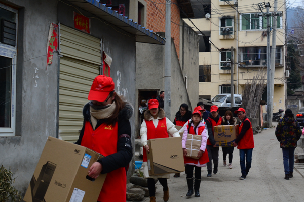 志愿者搬运图书和电脑