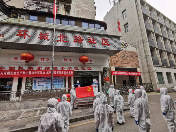 带着慰问品,探望滞留的外地旅客;穿着防护服,在党旗下重温誓词;走进群众家里,查访民情;穿梭楼栋之间,消毒防疫。