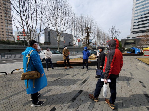 2⽉29⽇,集团公司新派下沉社区⼯作组成员克服通勤困难、从江夏区、东⻄湖区、洪⼭区、武昌区汇聚⾄江汉区⽩松社区认领疫情防控任务。到达帮扶社区后,傅书记介绍⽩松社区是万松街较⼤社区,常住居⺠ 15000 多⼈,社区⼯作⼈员事务繁杂、⼯作量⼤,同时对集团下沉⼯作进⾏了详细说明,集团公司新派下沉社区⼯作组组⻓陈墩亮向社区书记及⼯作⼈员表达了钦佩之情,并表示社区疫情防控⼯作是⼀项⼗分重要的⼯作,是疫情防控攻坚战的重要战场,电影集团将以⾼度的政治责任感和严明的⼯作纪律,扎实完成好各项⼯作任务。