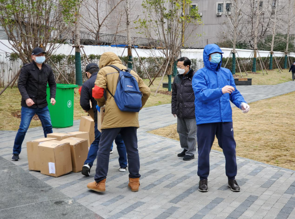 图为集团公司向百松社区捐赠防护服现场