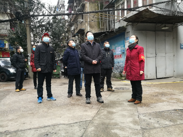 仁厚社区是武汉市中心城区中少有的典型老旧社区,大部分楼栋无电梯、无物业管理,配套设施差,60岁以上老人占比2/3。社区封闭管控后,居民日常生活需求与社区服务保障能力薄弱的矛盾十分突出。董永祥一行在社区党委书记的陪同下,先后查看了社区外围封控情况和社区里巷管理情况。在临时封堵的“水马”围栏前,董永祥仔细查验了围栏的紧固性、严密性,要求社区和工作组随时巡查,严防居民翻越甚至破坏围栏外出。在工作组刚刚协助处理的一起违反管控事件的居民家门口,董永祥指出,现在是疫情防控最吃劲的时间,任何人都要以防控大局为重,不能有任何的封控漏洞,工作组和社区干部要想办法做好居民服从管控的思想工作,确保封控管理无盲区、无死角。