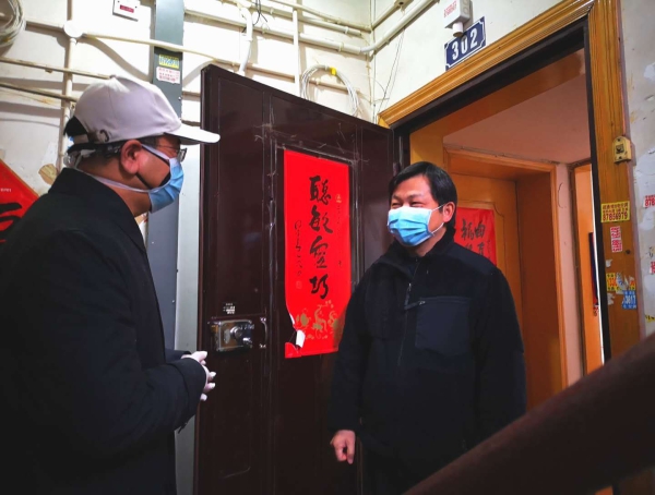 李建红主任在文理学部社区工作队带队领导邢军志陪同下,详细询问社区疫情防控、入户排查、居民生活保障等情况后,登门看望慰问奋战在抗疫一线医护人员家属,李建红在慰问中西医结合医院轮休医生郑虎时说:“你们在抗疫一线的英勇事迹天天都在感动着我们,我们落实省委组织部和省委直属机关工委的要求,前来感谢你们,向你们表示敬意,也请你们支持好前线爱人的工作,做好后方保障,同时要加强自身防护。”郑虎医生动情地回答:“我们非常感谢省台办的关心,并把这份关爱传递给抗疫一线的爱人,让她尽心尽力救治患者。”李建红在给社区112岁老人家属赠送生活物资时讲:“现在我们万众一心,共抗疫情,我们和社区一起共同做好。”社区家属激动地说:“我们按照政府要求呆在家里,社区都很关心我们的生活。我相信我们的国家一定会赢,一定会战胜这次疫情!”