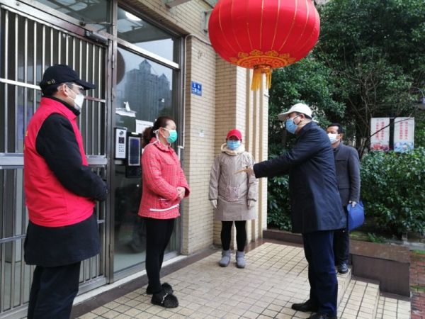 下午14时,主任李建红冒雨来到武昌区珞珈山街文理学部社区和青山区红卫路街八大家花园社区,了解我办两个对口联系社区疫情防控工作,看望慰问社区部分抗疫一线医护人员家属,给社区居民送温暖,并向对口联系社区捐赠部分防护物资。