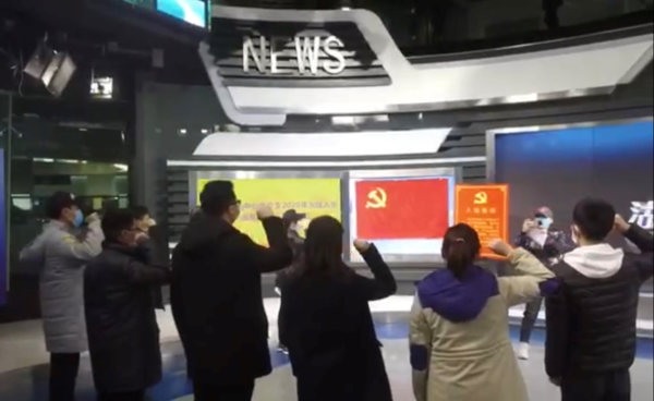 “我志愿加入中国共产党……”3月4日下午,湖北广播电视台融媒体新闻中心《湖北新闻》的演播厅迎来了一场简单而庄严的入党宣誓仪式。解炜、黄朋威、尹华正、雷少军、吴彤五名同志,怀着无比激动的心情,在党总支书记郭小容的带领下,面对鲜艳的党旗,庄严宣誓。五位同志的口罩遮住了面容,但却挡不住眼中的光亮,挡不住郑重的誓言。他们纷纷表示“能够在战疫的关键时刻加入党组织,是一种荣誉,是一份激励,更是一份沉甸甸的责任。面向党旗庄严宣誓,更加深刻的体会到这八十个字是需要用行动去承诺,用生命去守护的。”