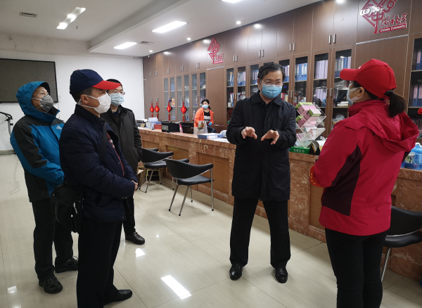 来到社区,马朝晖同志首先与第九网格网格员王琳同志进行了交流,详细了解该网格居民户数、新冠肺炎病例救治、生活物资保障、生活困难家庭、一线医护人员家庭、滞留在汉人员等特殊困难群体帮扶等情况,放鹰台社区党委书记叶玮同志就社区物资保障、下沉党员工作开展、特殊困难群体帮扶的整体情况进行了介绍。