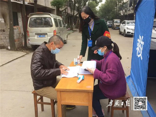 在严桥社区,工作队正在验证去外地返岗人员的健康码