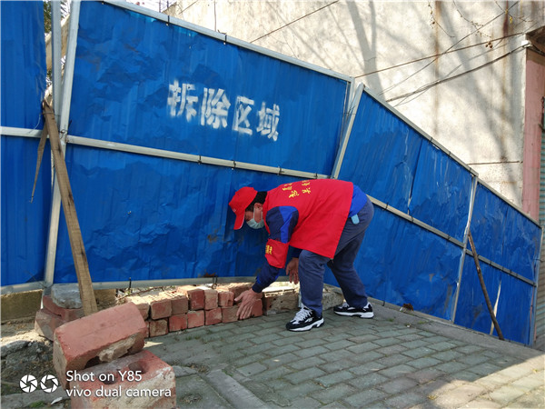 3月17日14:20,据第三组党员杨晓伟通报,两处通道下面被掏空,存在重大安全隐患。临时党支部书记王新祥闻讯后,立即带领孙清军同志,赶往事发地点,四处搬运废旧木板和砖头,历时半个多小时,将其完全封堵,筑牢了防控的坚固阵地。