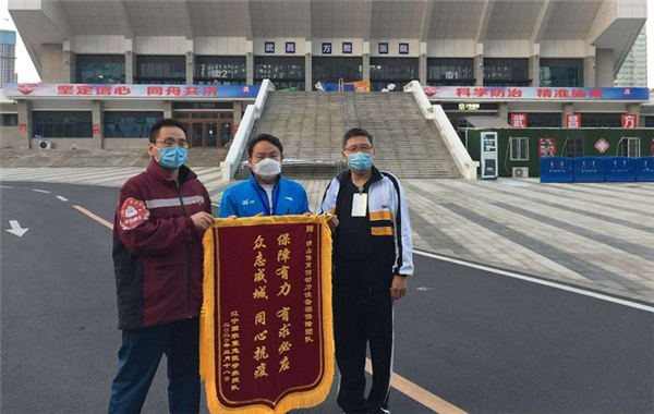 中国疾控中心和辽宁省医疗队送来锦旗。3月18日,中国疾控中心传染病预防控制病毒研究所书记、援鄂医疗队党支部书记卢金星同志为洪山体育中心保障团队送来锦旗“同心抗疫 保障有力”,感谢他们克服材料采购难度大、时间紧、任务急、突发故障多等各种困难,为各医疗支援队移动检测车辆接驳电源,为核酸检测车排除供电设备故障,第一时间完成了各项困难复杂的任务。