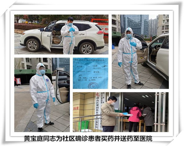东湖社区所辖岳家嘴小区是疫情“重灾区”,小区确诊36人,高居洪山区前列。为缓解社区压力,工作队主动承担急难险重任务,协同社区排查流动人员及疑似病人,开车送隔离人员到隔离点,为16户治愈回家患者送爱心物资。3月初,社区有一位确诊患者在省人民医院住院,急需到外院开中药辅助治疗,工作队主动请缨,到附近医院开中药,到确诊患者家里拿棉被、衣物等生活物资,及时送到省人民医院患者手中。