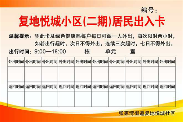 卡片虽小,却承载着有效管控的大作用。购物居民凭“小卡片”进出,既落实每户每日可以一人外出购物两小时的制度,又对出入人员做到“心中有数”,不仅如此,对凭卡进出人员,卡口工作人员逐一询问情况、测量体温、查看健康码,真正“卡”住了安全。“小卡片”上还印制疫情防控温馨提示和小区出入微信健康“二维码”,用通俗易懂语言提醒居民提高防控意识,同时方便居民更快扫码出入,有效防止人群聚集和交叉感染带来的风险。