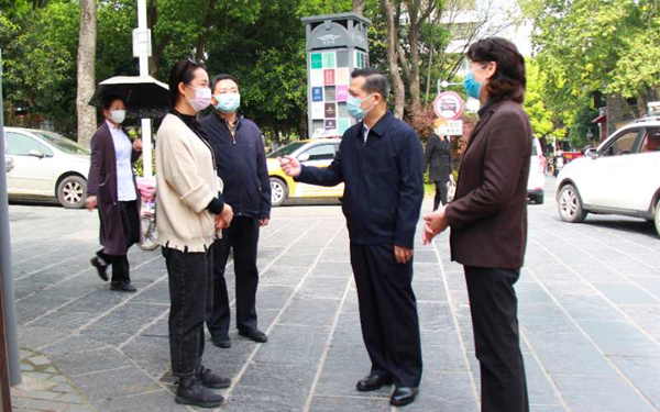 4月16日上午,省机关事务局党组书记、局长管俊深入对口支援的武昌区昙华林社区和东湖生态旅游风景区东湖路社区调研指导疫情防控工作,并慰问社区一线工作人员。