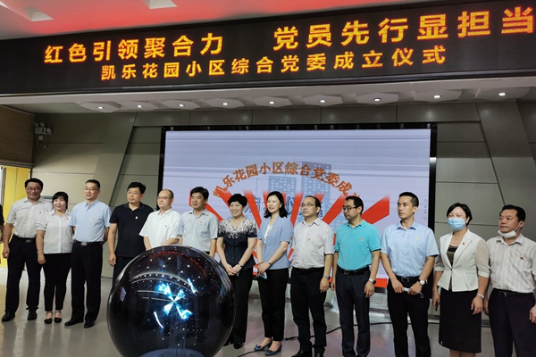 活动最后,省民宗委党组书记、主任马萍,武昌区委书记刘洁,省民宗委党组成员、副主任李爱旻等领导走到台前,共同点亮了“凯乐花园小区综合党委正式成立” 字样的水晶球,标志着以省民宗委为牵头单位的洪山坊社区凯乐花园小区综合党委正式成立。
