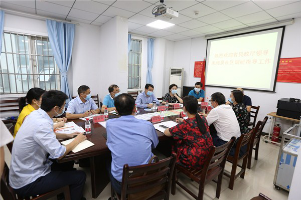 9月10日,省民政厅党组书记、厅长柳望春赴武汉市虎泉社区、江零社区调研基层社会治理和党员下沉社区工作,现场察看社区和党员下沉社区工作开展情况,召开座谈会听取社区党组织负责人、社会工作者和下沉党员干部代表的意见建议,厅党组成员、副厅长毕道丽参加调研。