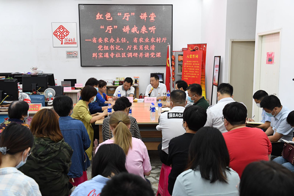 为认真贯彻落实《湖北省机关企事业单位党员干部下沉社区实施办法》要求,切实开展好党建联建,9月15日,省委农办主任,省农业农村厅党组书记、厅长肖伏清到联系点宝通寺社区调研,听取社区党组织负责人、志愿者、下沉党员干部代表的意见建议,了解工作中存在的困难与问题,与大家深入交流讨论并讲党课。厅党组成员、总农艺师李顺清参加活动。