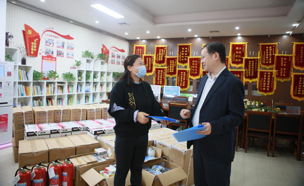向放鹰台社区捐赠消防器材和办公用品现场
