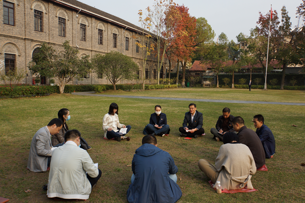 在中央农民运动讲习所旧址大操场,大家席地而座,认真聆听两个支部党员代表石克勤和舒欣的微党课,随后每名党员畅谈了参观的感受和如何继承革命优良传统推进新时期党的机构编制工作高质量发展的打算。