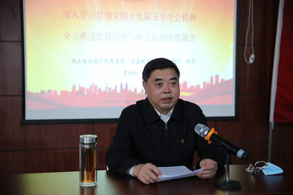 在谈到全面贯彻落实党的十九届五中全会精神,全力推进监狱治理与社会治理深度融合时,贾石松同志指出,一是要以加强城乡基层治理为出发点,推进省域治理现代化。二是要以确保监管场所绝对安全为根本点,推进监狱治理现代化。三是要以落实“双报到”制度为切入点,实现监狱治理与社会治理深度融合。针对“双报到”工作,贾石松同志强调,强化党建引领,拧紧治理力量一股绳。强化为民解难,织密治理服务一张网。强化机制保障,搅活治理体系一池水。
