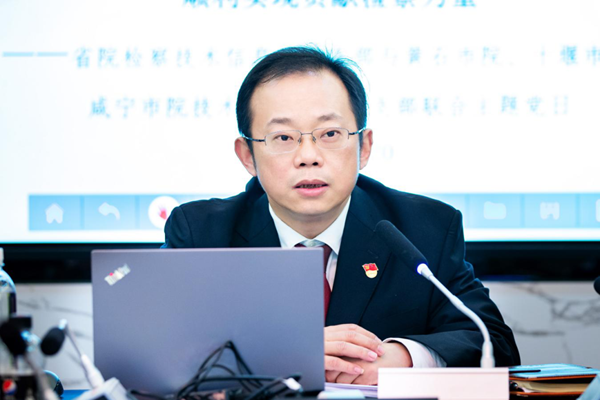 黄石、十堰、咸宁市院检察技术信息部支部党员王斑、王晓刚、杨志通过远程讨论系统线上发言,就学习贯彻党的十九届五中全会精神,从科技与业务结合、党建与工作结合、学习与发展结合等方面分享了学习体会。