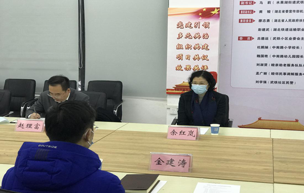 余红岚同志现场就社区提出的5个方面任务清单逐一进行了细化分工,明确了具体对接处室和责任人。她强调,社区特色工作创建是新时代党建引领社区治理的一个很好抓手,省委宣传部鼓励支持武铁社区把文明实践站作为社区特色工作进行创建,结合职能全力提供指导和帮助。社区文明创建工作要结合武汉老旧小区改造项目,把小区规划设计好、硬件设施配套好、生态环境建设好,要选树好先进典型、组织好文化活动、开展好志愿服务,实现创建为民、创建惠民、创建靠民,以提升居民获得感、幸福感、安全感。省委宣传部处室负责人纷纷表态,结合社区和居民需要,充分发挥职能处室业务和资源优势,积极支持、参与社区特色工作创建,共同推动党建联建、社区共治,促进社区工作特色更特、亮点更亮。