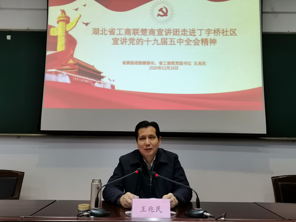 宣讲团成员省委统战部副部长、省工商联党组书记王兆民以《科学把握新发展阶段,加快融入新发展格局,确保五中全会精神在荆楚大地落地生根见效》为题,重点从充分认识党的十九届五中全会的划时代里程碑意义、深刻把握五中全会的丰富内涵和精神实质、全面落实省委十一届八次全会部署,奋力推动党的十九届五中全会精神在荆楚大地落地生根见效等方面,结合社区疫情防控、党员下沉常态化机制,提高社区治理能力,生动、全面地进行了讲解。