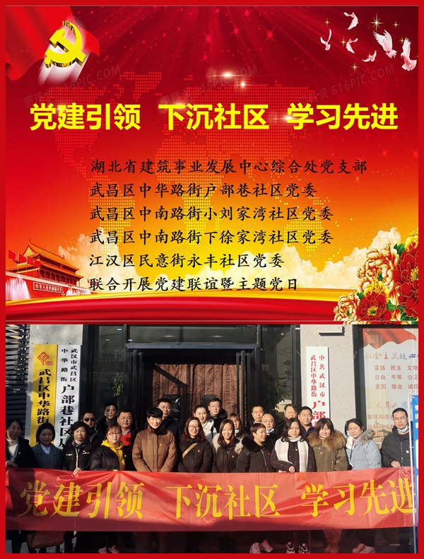 为深入贯彻落实省委关于深化新时代党建引领加强基层社会治理的重要决策部署,12月30日下午,省建筑事业中心综合处党支部、武昌区中南路街小刘家湾社区、下徐家湾社区党委、江汉区民意街永丰社区党委一行20余人,赴中华路街户部巷社区,开展“党建引领、下沉社区、学习先进”党建联谊暨主题党日活动。