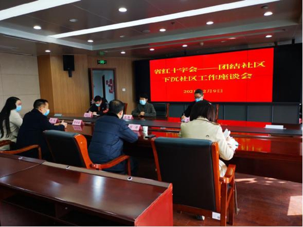 2021年2月9日上午,省红十字会和武汉市武昌区徐家棚街党工委及团结社区共同召开下沉社区工作座谈会。