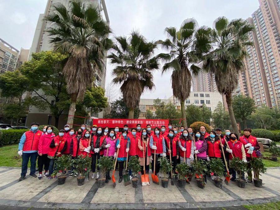 2021年3月9日上午,在第43个植树节活动到来之际,省妇联组织下沉党员在联系点——武昌区积玉桥街金地花园社区开展植树节活动,本次活动主题为“拥抱春天,播种绿色,建设美丽家园”。