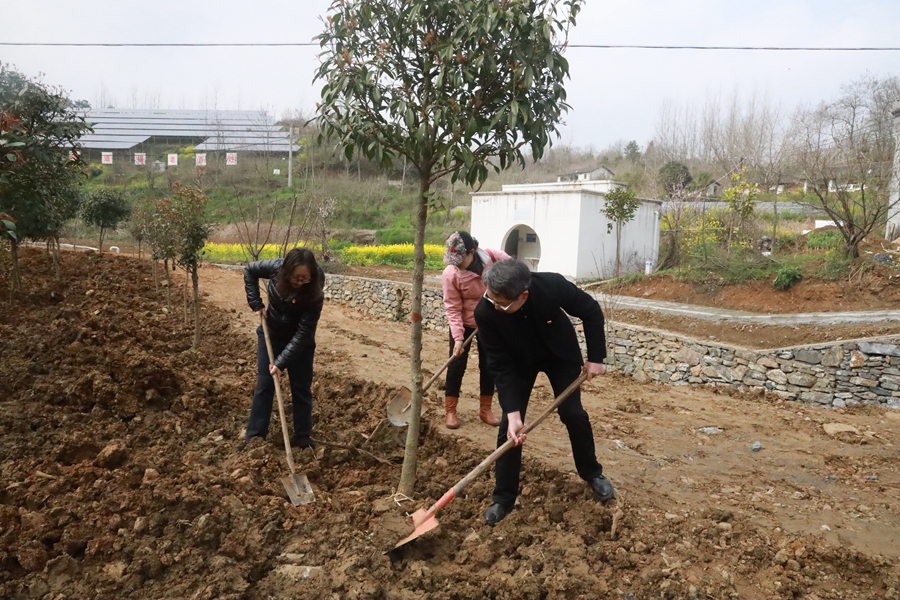在龚店村文化广场,众手植下一片崭新的红叶石楠。植树结束,举行简朴的揭牌仪式,一个写有“共谋绿色生活 建设美丽乡村‘共建林’”的不锈钢牌由省作协机关党委与龚店村党支部醒目地立于树林之首,为这天的植树节增添了节日的光彩。随后,大家参观了龚店村乡村振兴产业项目香菇制袋厂,到新四军第五师司令部、政治部所在地随州九口堰纪念馆开展党史学习教育活动。