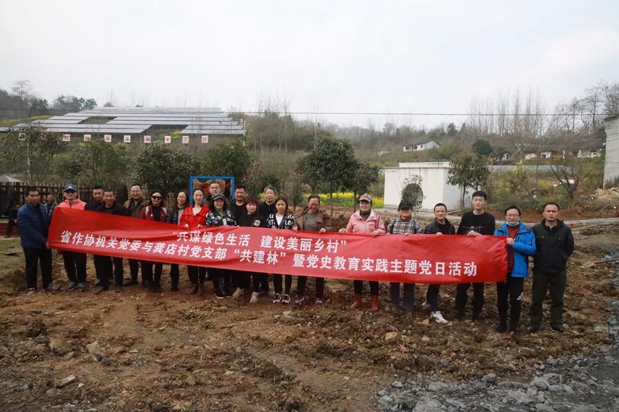 3月12日,春阳高照,鲜花盛开,省作协机关党委组织5个支部20名党员职工来到对口扶贫村龚店村,与省作协驻村扶贫干部及村干部一起开展党史学习教育主题党日活动并举办“共谋绿色生活 建设美丽乡村” 共建林揭牌仪式。