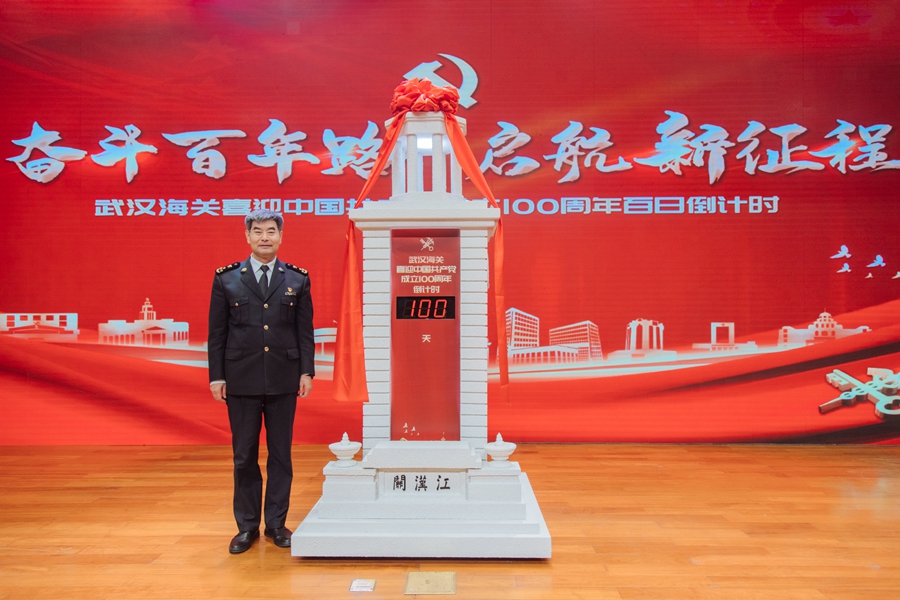 为武汉海关喜迎建党100周年百日倒计时揭牌