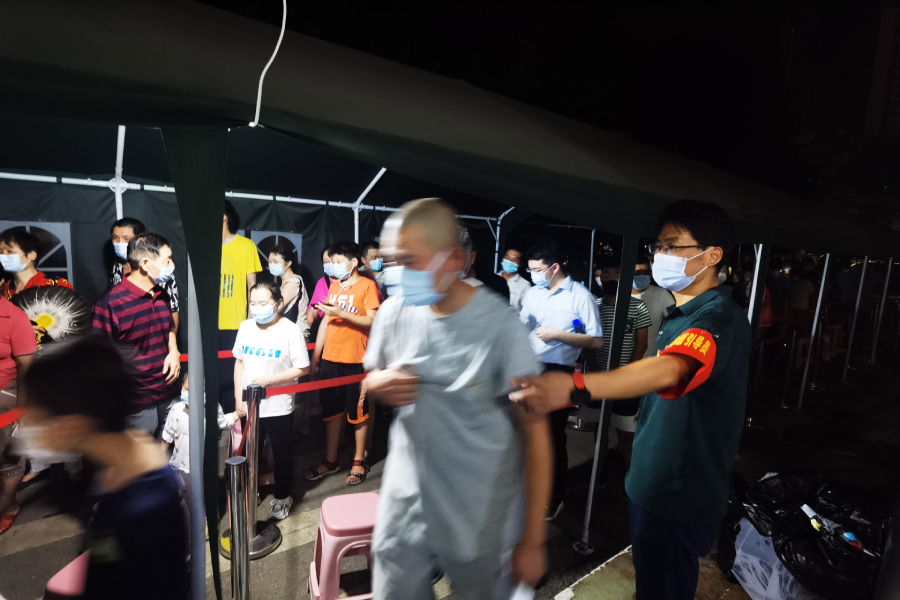 二桥社区是一个老旧社区,居住人员复杂,老人较多,检测地点安排在徐东路小学。为保证检测有序进行,突击队队员们帮助合理布置检测设备,加强人员管控分流,帮助老人智能扫码登记,安抚部分群众因酷暑带来的不良情绪,为奋战在一线的医务人员、社区人员等送去防暑降温物资,连续3天全员核酸检测顺利推进,得到了社区群众一致好评。