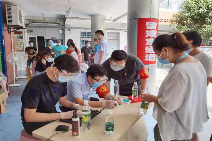 从8月4日起,每天由分党组成员带队,10名应急突击队队员冒着酷暑炎热,从早上8点工作至晚上10点,重点参与群众组织引导、信息登记、重点人员服务、小区封闭管理等。