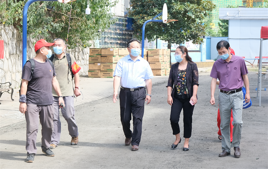 湖北广播电视台(集团)坚决贯彻落实省委疫情防控工作会议精神,把疫情防控作为当前头等大事,落实“快、狠、严、扩、足”的工作要求,迅速组织39名突击队员组成2支队伍下沉社区,协助东龙社区、花园山社区开展全员核酸检测。8月5日下午,台(集团)党委书记、台长、董事长郭忠到东龙社区调研指导疫情防控工作,实地查看核酸检测进展,了解下沉社区突击队工作情况,慰问坚守一线的医护人员、社区工作者和下沉党员干部。