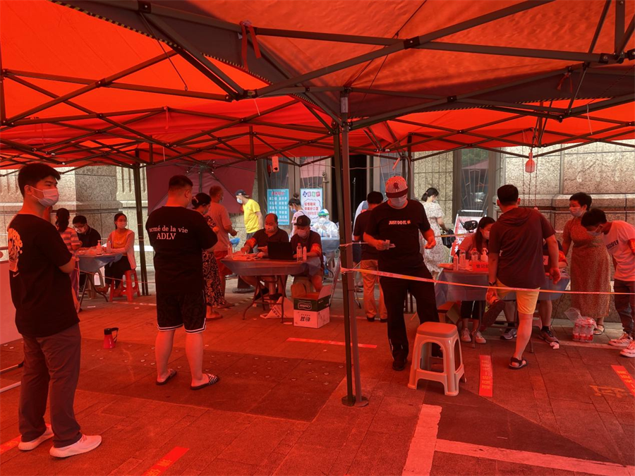 8月4日,副厅长郭新明带队分赴对口支援的武汉市紫菘枫林上城和广八路社区,连日来,包括3位厅领导在内的厅机关及其厅属单位30多名下沉党员协助社区开展2轮核酸采样工作。