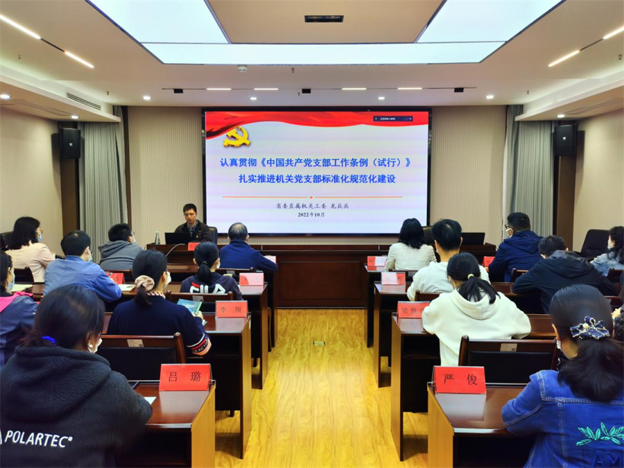 10月12日,省地质局举办基层党建实务专题辅导,邀请省委直属机关工委组织部副部长龙兵兵作辅导报告。局属25家单位的党支部书记、副书记、支部委员共计400余人通过“线上+线下”的形式参加学习。