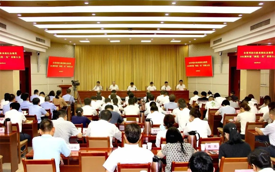 6月29日下午,省司法厅党委隆重召开全省司法行政系统庆祝建党102周年暨“两优一先”表彰大会,激励系统各级党组织和广大党员干警深刻领悟“两个确立”的决定性意义,增强“四个意识”、坚定“四个自信”、做到“两个维护”,为湖北加快建设全国构建新发展格局先行区作出新贡献。厅党委书记、厅长龚举文出席会议并作《深化主题教育 建强战斗堡垒 奋力推进司法行政工作现代化》专题党课。省委第十巡回指导组同志到会指导。