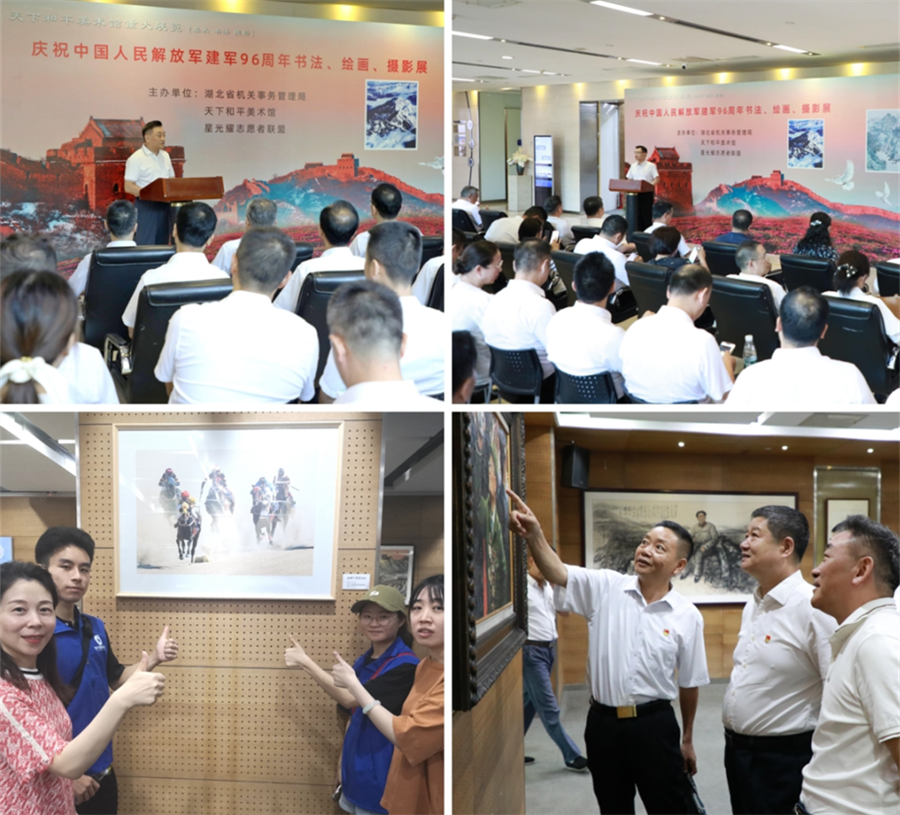 天下和平美术馆荣誉馆长、湖北省军区原政治部副主任姚义勇,天下和平美术馆执行馆长、湖北省军区荆州军分区原副政委马国旗,省纪委监委派驻局纪检监察组成员,局二级巡视员,局机关各处室、局属各单位主要负责人和复转军人代表共80余人参加活动。